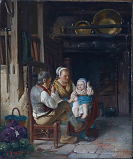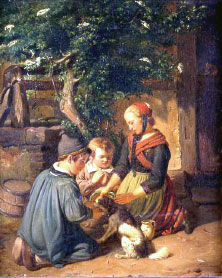 Die Kinder pflegen ihren kranken Hund, 1842, Bezirksverwaltung Bad Godesberg, Foto: Hans-Dieter Heckes, Bad Godesberg