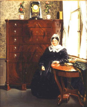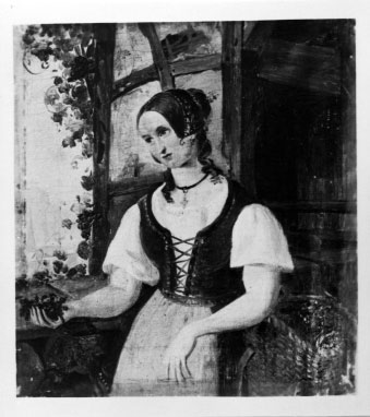 Dargestellt ist die Großmutter des Künstlers (gest. 19. Juni 1849 im Alter von 82 Jahren in Godesberg), Ehefrau des ehemaligen Dieners beim Kurfürsten Max Franz und späteren Godesberger Gastwirtes Lambert Nicolai (gest. 1821 in Godesberg). Taufpatin des Künstlers. Frau Anny Adams, die letzte bekannte Besitzerin, stammmte aus der Familie Nicolai. Ein Aufruf an die heutigen Besitzer sich zu melden, blieb erfolglos.