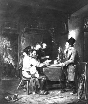 1850 zeigt Hasenclever auf der Akademie Ausstellung in Berlin das Gemälde: „Bauer im besten Gasthaus bei Theilung des Lotterie - Gewinnstes“ (lt. Soiné, Werkverzeichnis verschollen).