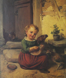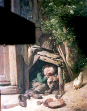 Provenienz bekannt aufgrund einer handschriftlichen Notiz von Dr. Walter Cohen im Archiv Söhn. Laut dieser Notiz “z. Zt. bei Spinrath“. Von Paffrath erworben und verkauft. Lt. Kat. Köln 1973: „Kleines Kind mit Hund. Vor einer Haustür stehend kleines Mädchen. Rechts ruhender Hund. Im Hintergrund Hühner und Blumen.“ Ich danke der Galerie Georg Paffrath, Düsseldorf für die Bereitstellung des Fotos. Eine Prüfung des Originals war nicht möglich. Das Gemälde wurde im Juni 2018 bei Karbstein in Düsseldorf versteigert. Verbleib unbekannt.